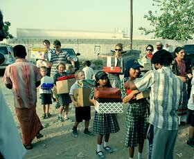 It involves sourcing, funding, packing and then distributing thousands of "Care Packages" to labour camps. These days are highlights in Dubai's calendar and are beautiful examples of Dubai's diverse community coming together for a common good. Anyone can join in to help assemble the packages. Local media reports on how wonderful it is to see all nationalities, all age groups: school children to elderly, and all social classes coming together to help those less fortunate. Unlike campaigns run by some other charities, Adopt-a-Camp's Care Packages are hefty bundles of three months supplies of food and toiletries even including new mattresses, bed-linen, clothes and towels. They go hand-in-hand with the Hygiene Workshops and are geared towards making a tangible improvement in the quality of the men's lives. What also makes these days unique is that everyone who's participated in the sourcing of the packages is welcome to go along to the camps for the actual distribution and see the difference they're making with their own eyes.